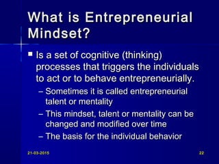 Entrepreneurship And The Entrepreneurial Mindset Ppt Video Online Download